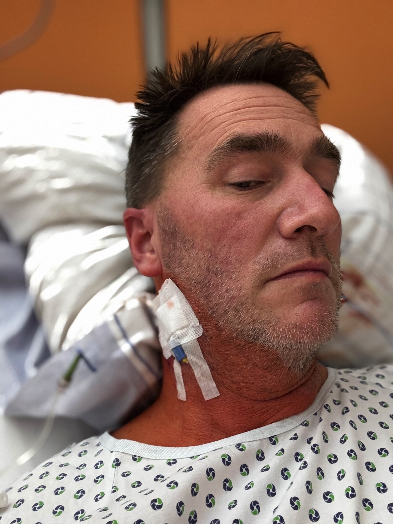 - Auf dem Bett ab in die Anästhesie, um den ZVK (zentraler Venenkatheter) zu legen